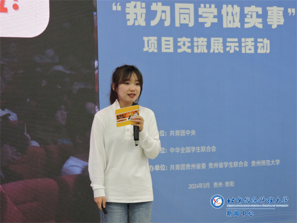 校学生会主席团成员、项目负责人吕佳琪说:“在参加全国高校学生会组织“我为同学做实事”项目交流展示的过程中,我收获了许多宝贵的经验和启发,了解到了其他高校的活动形式、工作理念,同时感受到了学生会应注重服务,主动走近同学身边,和同学们联通连心,倾听同学所想、服务同学所需、解决同学所难,切实帮助同学解决实际问题,在未来学生会将不断创新活动项目,不断提升学生满意度、大局贡献度、社会认可度。”