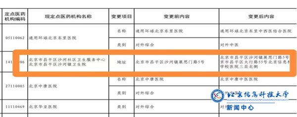在学校党委的靠前指挥下,在昌平区医疗保障局沙河社区卫生服务中心的大力支持及学校各部门的全力配合下,北京信息科技大学沙河校区门诊部成功入选北京市昌平区沙河社区卫生服务中心协议定点机构,这标志着沙河校区医保正式开通。
