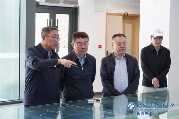 在科研楼,丁勇一行参观了现代测控技术教育部重点实验室,详细了解了学校的科研空间布局、优势科研领域和最新科创成果。
