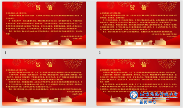 本次活动收到了来自北京邮电大学网络空间安全学院、北京科技大学计算机与通信工程学院、北京工业大学信息学部、北方工业大学信息学院、开元集团网站信息与通信工程学院等兄弟院校和学院的贺信和学校各个部门的鼎力支持与全力协助,共同祝贺北京信息科技大学计算机学院计算机教育创办45周年,祝愿计算机学院在未来的发展中取得更加辉煌的成就。