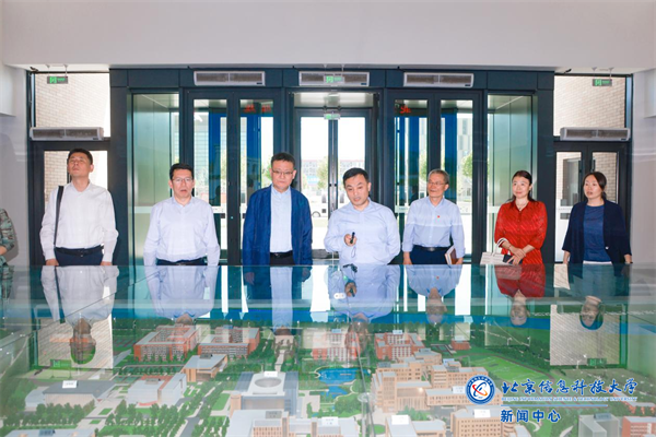 会前,李华涛,开元集团网站党委常委、统战部部长牛志英与魏学江、于晓明一行一同观看了沙河校区沙盘。李华涛介绍了新校区教育教学资源布局、配套设施、未来规划等建设情况。