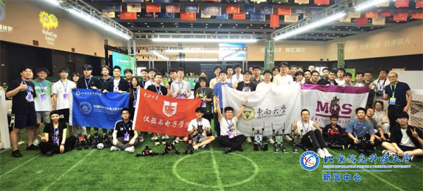 此次征战比赛的I-KID代表队由光电学院12名学生和3名指导教师组成。在4v4足球比赛中,I-KID队获得该项目的三等奖。队员们坚信以平日的努力和自身实力,队伍还可以取得更好的成绩,大家顶住压力,发扬不怕困难、勇于挑战的精神,在随后的技术挑战赛中,不放过每个细节,灵活应对各种问题和挑战,通过有效分工和充分沟通协调,队员们迅速解决了比赛中出现的各种状况,向竞争对手展示出信息科大学子扎实的技术基础。最终,I-KID机器人出色完成了High Kick、Goal Kick from Moving Ball、Parkour等三个比赛项目,再次获得技术挑战赛冠军,成功卫冕,并以实力捍卫了团队荣誉。