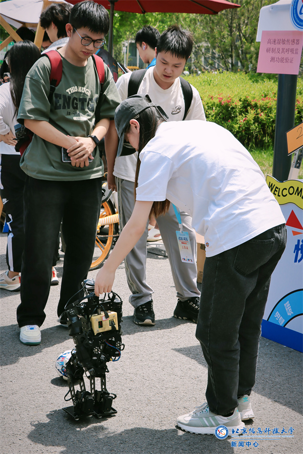 参加活动的领导、老师和同学们沿着桃李路,一起体验创意市集活动。大家三五成群,在交流中感受特别的社区体验。在科技体验区,来自机电、光电、自动化、信通和计算机学院的同学们,展示了救援越障机器人、高速湿敏传感器、ikid 类人足球机器人、海洋轻型探索机器人、3d打印机、湖泊表层杂物清理装置、桌面小狗、回忆方块等科创作品。