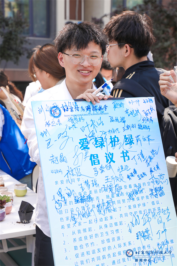 “暖暖社区”多肉认养,为同学们送上一盆软萌可爱的暖心植物。还设立了爱绿护绿倡议书,同学们纷纷签名,自觉投身绿化美化的守护工作。