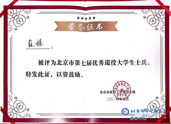 苏稳当选北京市第七届优秀退役大学生士兵
