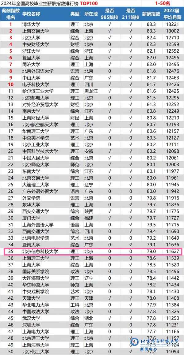 全国35!北京信息科技大学毕业生薪酬指数提升3个位次