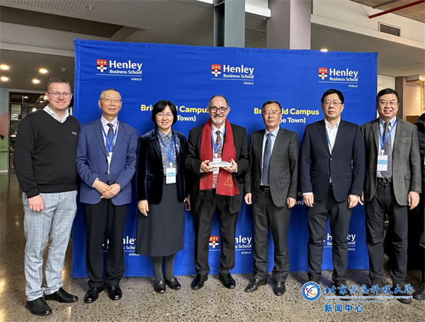 (王兴芬副校长与非洲亨利商学院院长Jonathan Foster-Pedley(中)和英国雷丁大学Kecheng Liu教授(左二))