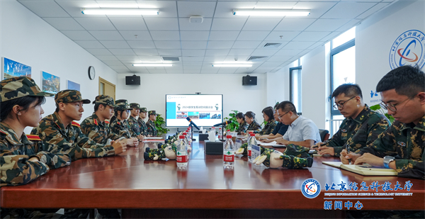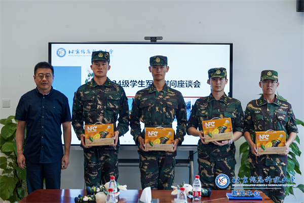 分享交流环节,学院党委副书记代表张日颖、高立浩汇报了军训期间学生教育管理服务情况,就本学院军训工作作经验交流。参训教官潘佳伟分享作为学生教官身份承训的特殊感受。辅导员代表陈曦从“学校有力、学院有爱”两方面畅谈了军训主责辅导员的切身体验。军训学生代表蔡雪梅汇报了自己在军训期间的成长感悟。座谈会上,与会人员共同观看了“信息之星火,铸就强国梦——2024级学生军训中期汇报视频”。