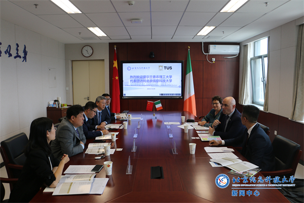 10月9日上午,校党委常委、副校长肖志松在沙河校区会见了来访的爱尔兰香农理工大学工程与信息学院院长肖恩•莱恩斯(Sean Lyons)及工程与建筑环境学院院长玛利亚•凯恩(Maria Kyne)代表团。双方就两校合作事宜进行会谈。