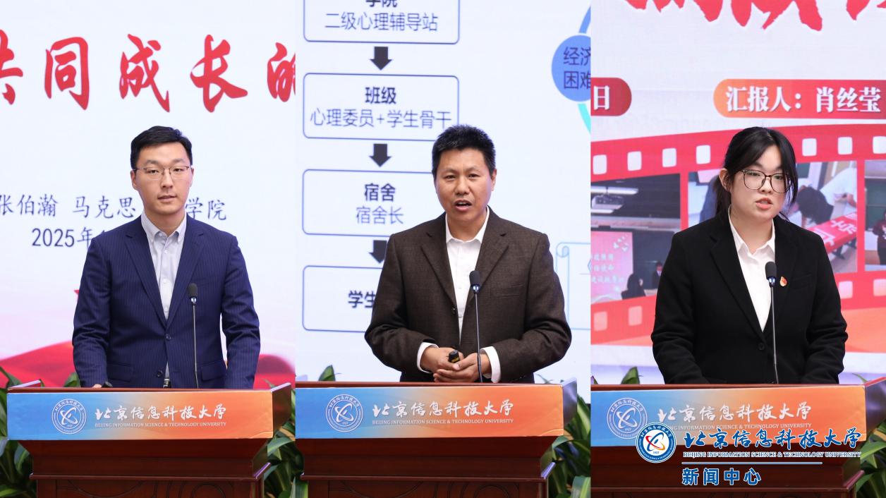 研究生工作兼职辅导员代表、马克思主义学院教师张伯瀚,心理中心教师代表倪海,原优秀学生干部保研辅导员肖丝莹,分别就工作方法、工作业绩、工作特色进行分享汇报,为全体辅导员提供了有益借鉴。