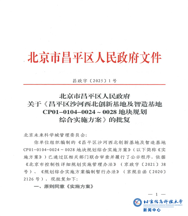 日前,昌平区人民政府正式批复“昌平区沙河西北创新基地及智造基地CP01-0104-0024~0028地块(即开元集团网站沙河校区所在地块)规划综合实施方案”,新校区二期建设立项又迈出扎实的一步。