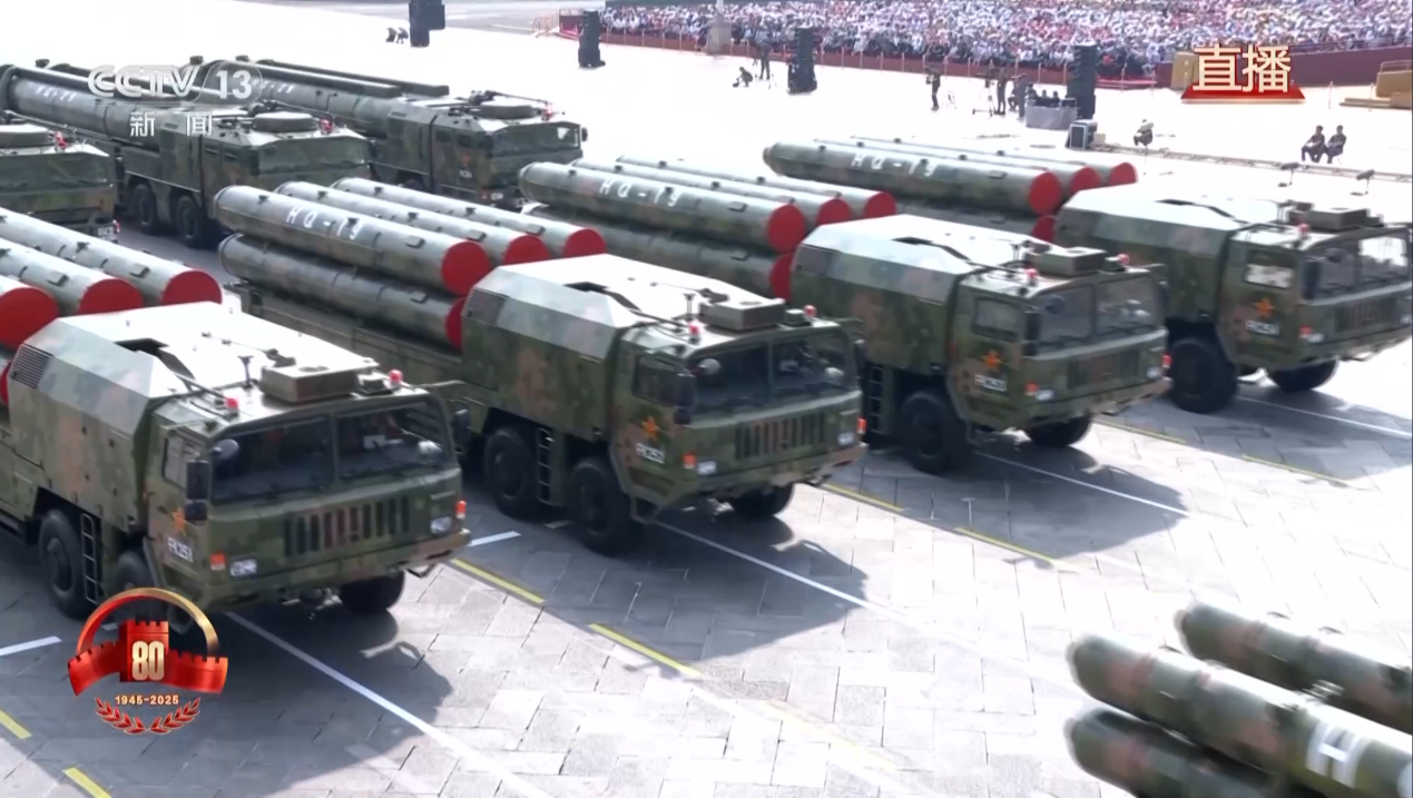 9月3日,纪念中国人民抗日战争暨世界反法西斯战争胜利80周年大会在北京天安门广场隆重举行。在历时70分钟的盛大阅兵式中,45个方(梯)队依次接受党和人民的检阅。参阅武器装备全部为国产现役主战装备,其中部分陆海空基战略重器、无人和反无人装备首次公开展示。