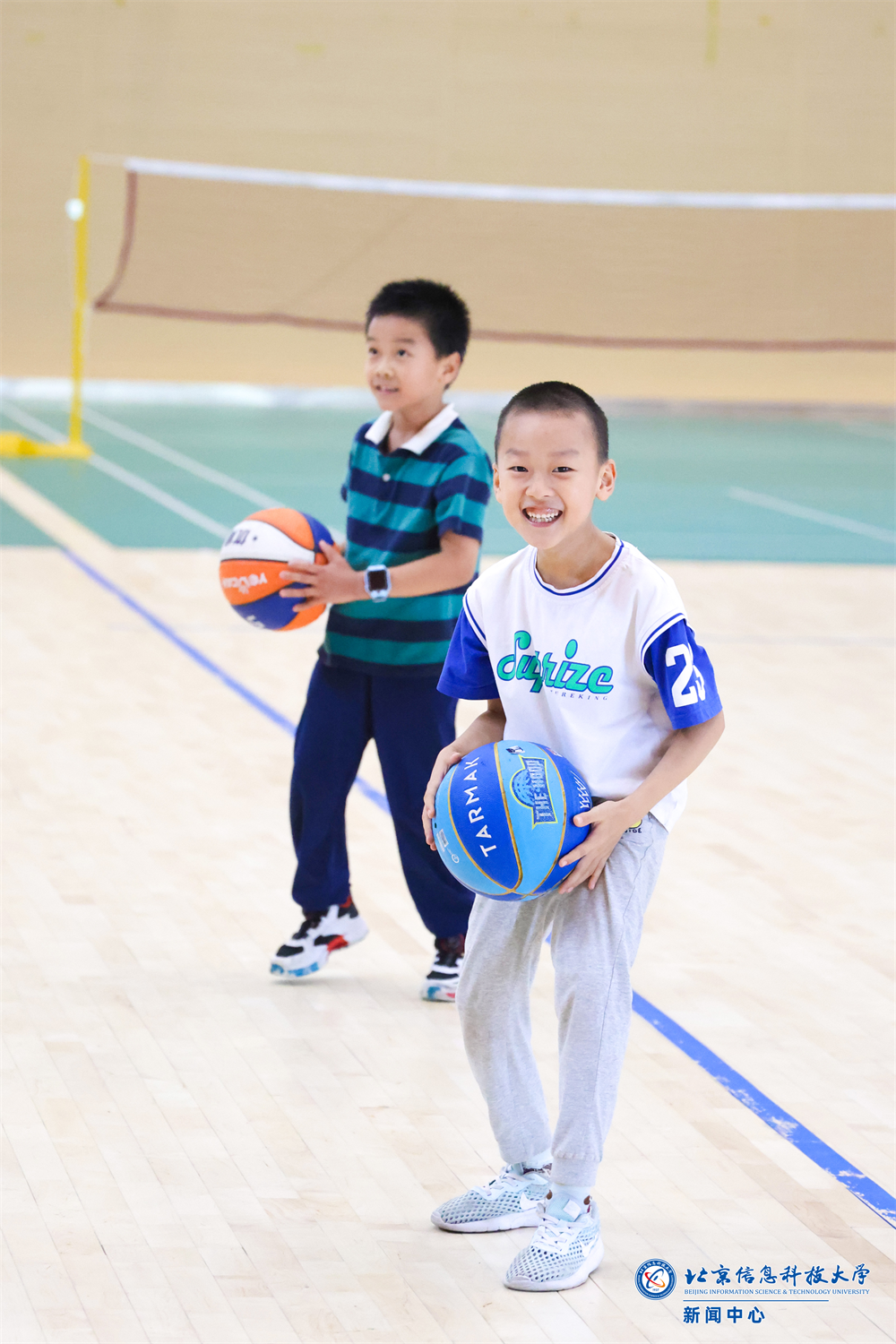 篮球课堂上,孩子们在教练指导下系统学习拍球、带球、投篮等基础技能。