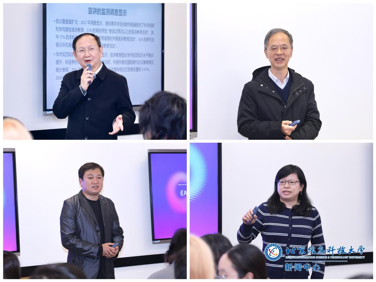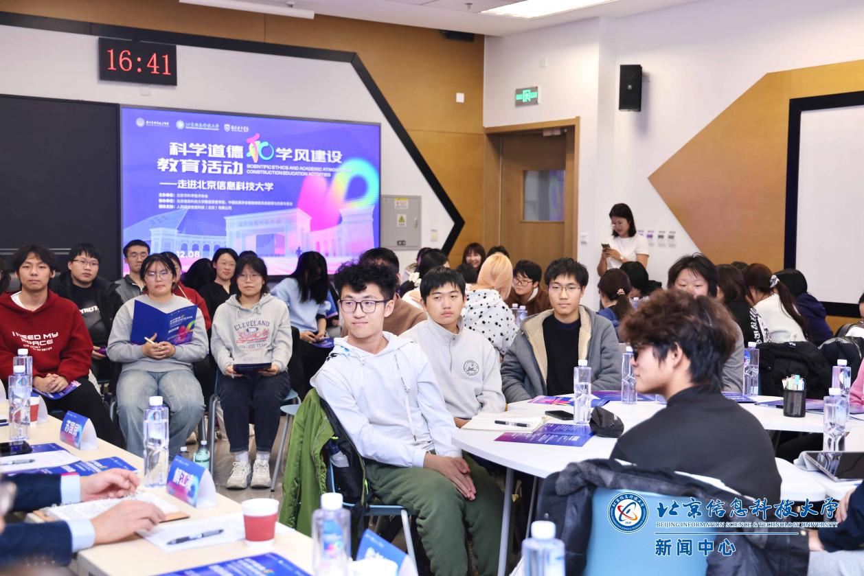 为进一步深化教育成效,科学道德和学风建设座谈会同步举办。张培富,《民主与科学》杂志社办公室主任、正高级经济师严俊,信息科大计算机学院副教授孟坤,中国科学院文献情报中心科研诚信研究中心副研究馆员任艳青等校内外专家学者围绕相关主题展开分享,通过互动交流进一步夯实科学道德认知,筑牢学风建设根基。