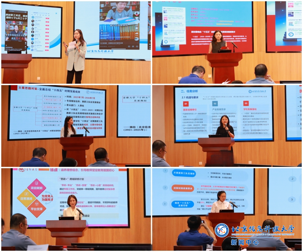 比赛命题紧扣学校发展脉搏,要求选手围绕“首都大学‘十五五’时期教职工队伍发展规划”的编制背景,以“弘扬教育家精神”为主题,设计一项特色工作方案。在现场展示中,来自光电学院、科技处、离退处、先进院、信通学院、对外合作联络办、招就处、后勤处、商学院、自动化学院(人工智能学院)、计算机学院、理学院、马院、校区办、宣传部、组织部、管理学院等单位的18位选手依次登台。他们立足岗位实际,结合学校中心工作,聚焦“教育家精神”融入管理实践,在短短6分钟内,通过精炼的语言表达、清晰的逻辑阐述和富有创意的多媒体辅助手段,生动展示了各自精心设计的方案,充分展现了信息科大青年管理干部的专业素养、创新思维和解决实际问题的能力。