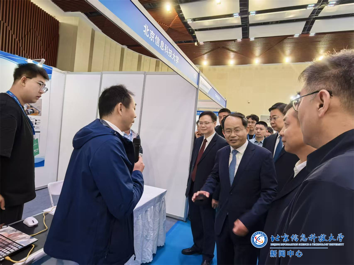 开幕式结束后,工业和信息化部、青岛市委领导莅临学校展位,听取学校参赛团队关于智能管道机器人的展品汇报。