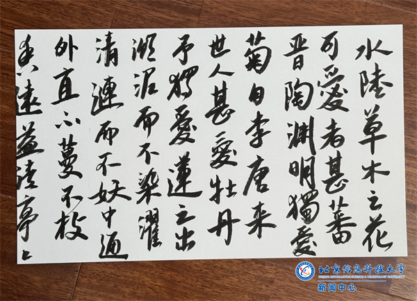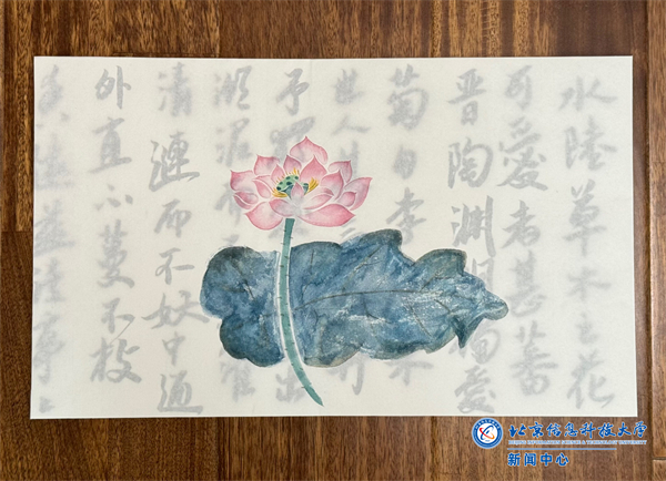 【简要介绍】本作品旨在呈现清廉如一盏明灯,照亮人们的前行之路。灯罩象征道德光芒,为纯手工制作,由“书”和“画”两部分构成。“书”的部分节选自周敦颐的《爱莲说》,借文言经典传递廉洁纯正思想;“画”的部分描绘了象征清廉的莲花,与名句“出淤泥而不染”相呼应。底座为正方形,象征稳重踏实,寓意良好的职业道德和踏实的工作作风。