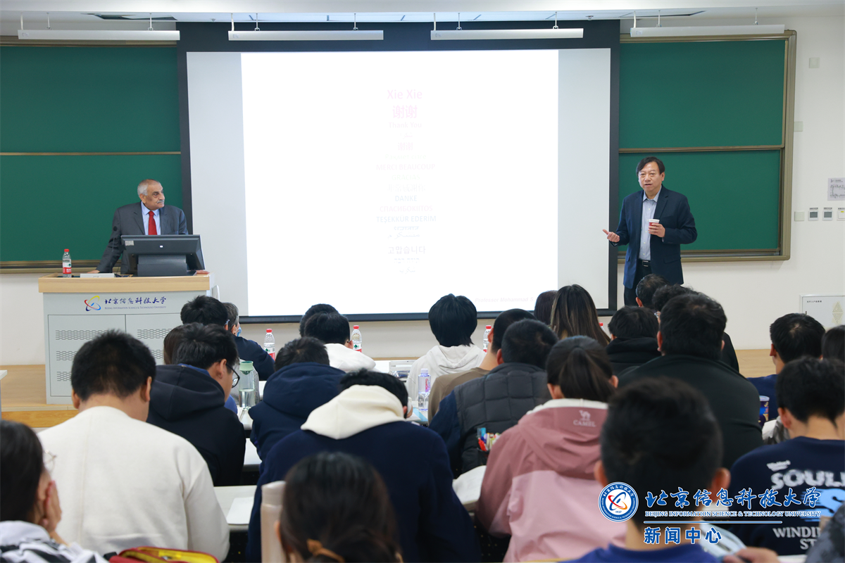 11月6日,勤信荣誉学院“荣誉科技论坛”第五期活动在沙河校区信息楼举行。本次活动特邀IEEE终身会士、全球前2%科学家、国际知名学者、约旦大学Mohammad S. Obaidat教授来校授课。校党委副书记、校长郭福,校党委常委、副校长王兴芬,与全校近百名学子一同聚焦人工智能领域的前沿趋势与核心挑战,为新生研讨课实践注入国际化学术活力。