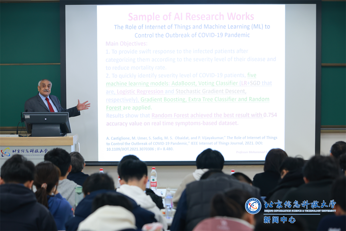 Mohammad S. Obaidat教授以“On the Trends and Challenges in Artificial Intelligence and Samples of our Recent Works”为题,系统剖析了人工智能(AI)及其子领域机器学习(ML)对信息通信技术(ICT)、工业体系及全球经济的革命性影响。他结合团队最新研究,详细介绍了新型算法与方案设计、物联网(IoT)与机器学习系统,以及计算复杂度较低的、基于强化学习(RL)的新型网络流量预测机制等前沿成果,为师生铺展AI技术突破与应用的全景图景。