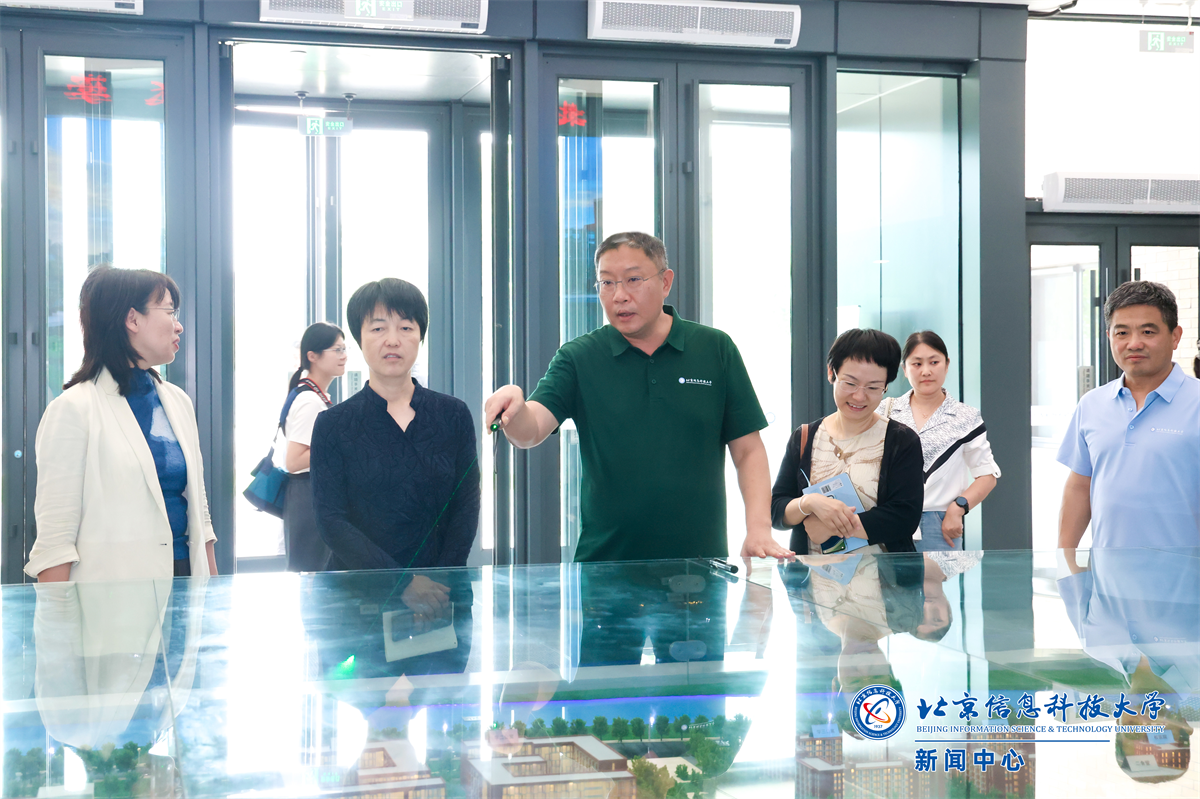 解江凌代表学校对调研组来校指导工作表示热烈欢迎,并结合沙河校区沙盘着重介绍了沙河校区当前的建设进展、未来的整体发展规划,阐述了新校区对学校拓展办学空间、提升育人环境和长远发展的战略意义。