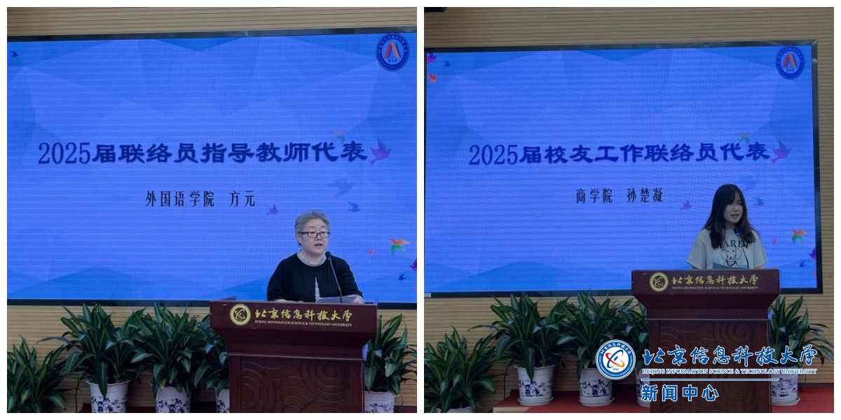 校友工作联络员指导教师代表、外国语学院教师方元,校友工作联络员代表、商学院毕业生孙楚凝分别发言,他们表示一定会履行职责,秉承积极为校友与母校服务的宗旨,积极配合校友会开展工作,为校友成长和母校发展贡献自己的力量。