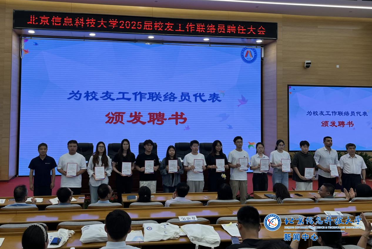 6月16日下午,2025届校友工作联络员聘任大会在沙河校区举行。副校长张健、校长助理林国策出席会议并讲话。会议由对外合作联络办公室、校友工作办公室主任马翔宇主持。