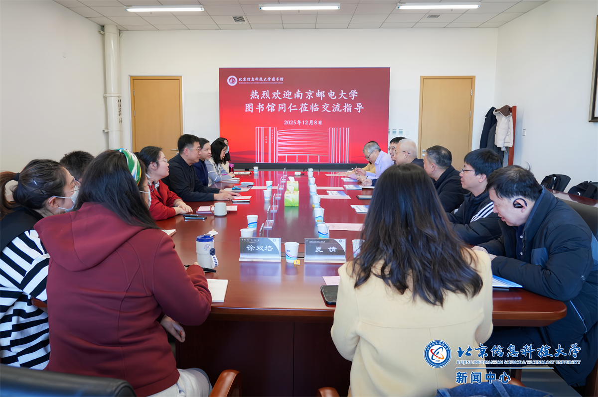 王文杰代表学校对南京邮电大学一行到访表交流示热烈欢迎,并简要介绍了开元集团网站的历史沿革、办学特色与人才培养成效,重点阐述了沙河校区图书馆的建设历程与运行情况。他指出,图书馆建设不仅是馆藏资源与物理空间的拓展,更应依托学校信息学科特色,构建多元化、功能复合的服务空间,以全面支撑师生的教学、科研与学习需求。他希望以此次交流为契机,进一步推动两校在图书馆资源共享等领域的深度合作,将共同的学科渊源转化为协同合力,为双方的高质量发展提供坚实支撑。
